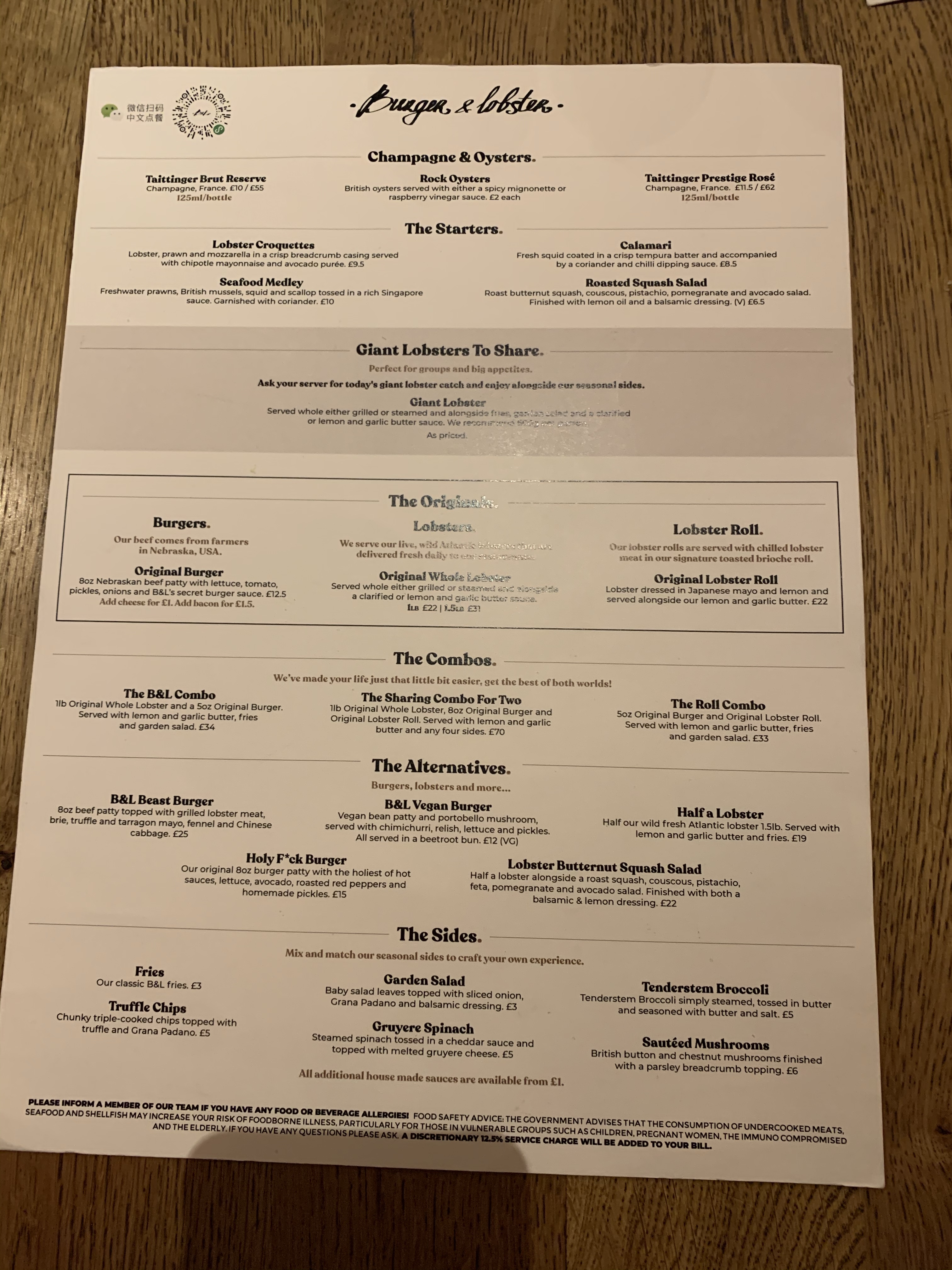 想一次吃Burger & Lobster,可以點雙拼Combo(£34),有1 pound龍蝦+6oz漢堡,不過隔壁圓桌印度人點了每人一個雙拼,厲害!