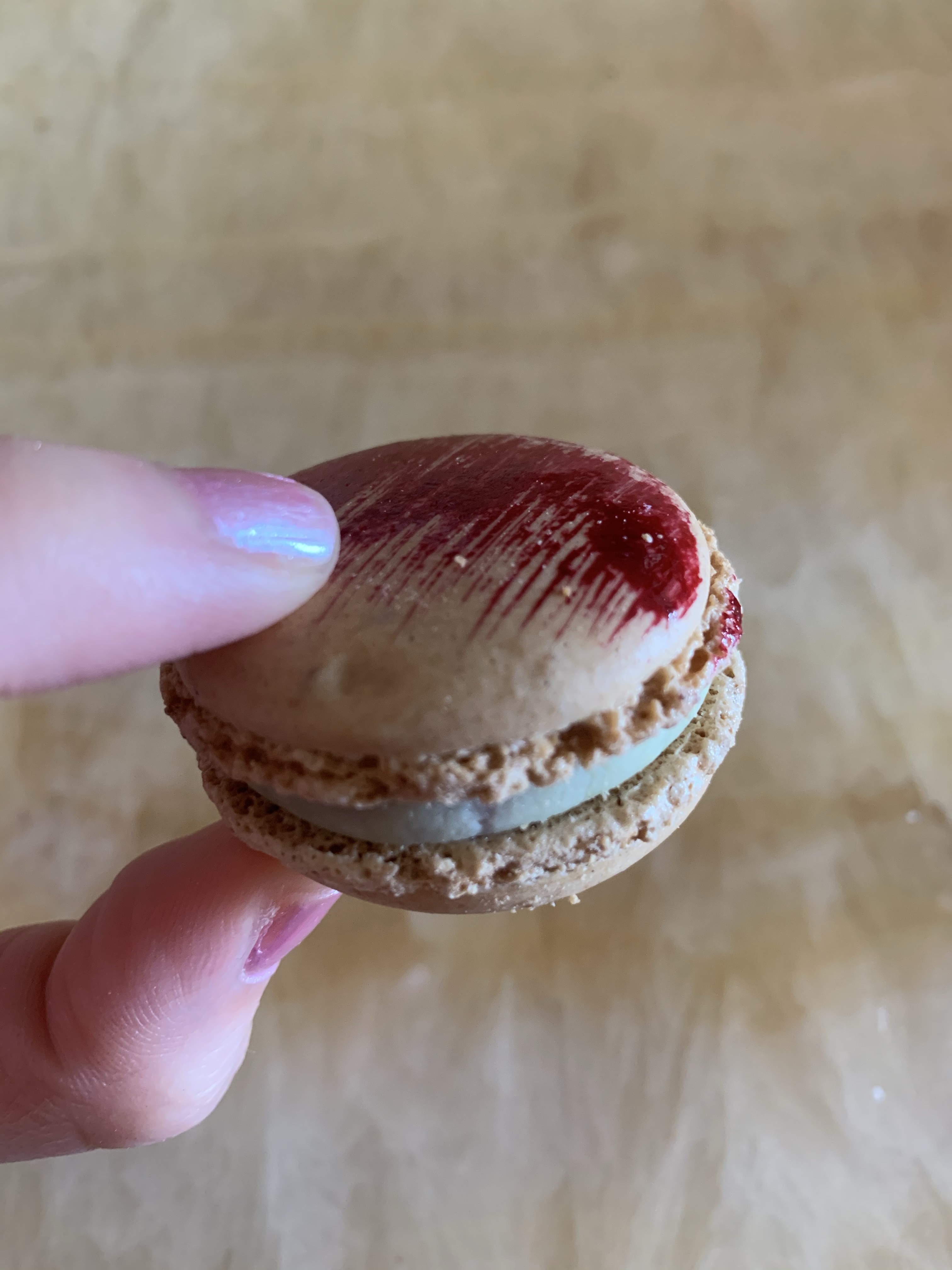 Part de craquant法文的意思是鬆脆的一塊,很奇怪的名字。我發現是一個士多啤梨海綿蛋糕,綠色片是果仁糖,不會太甜,剛剛好。