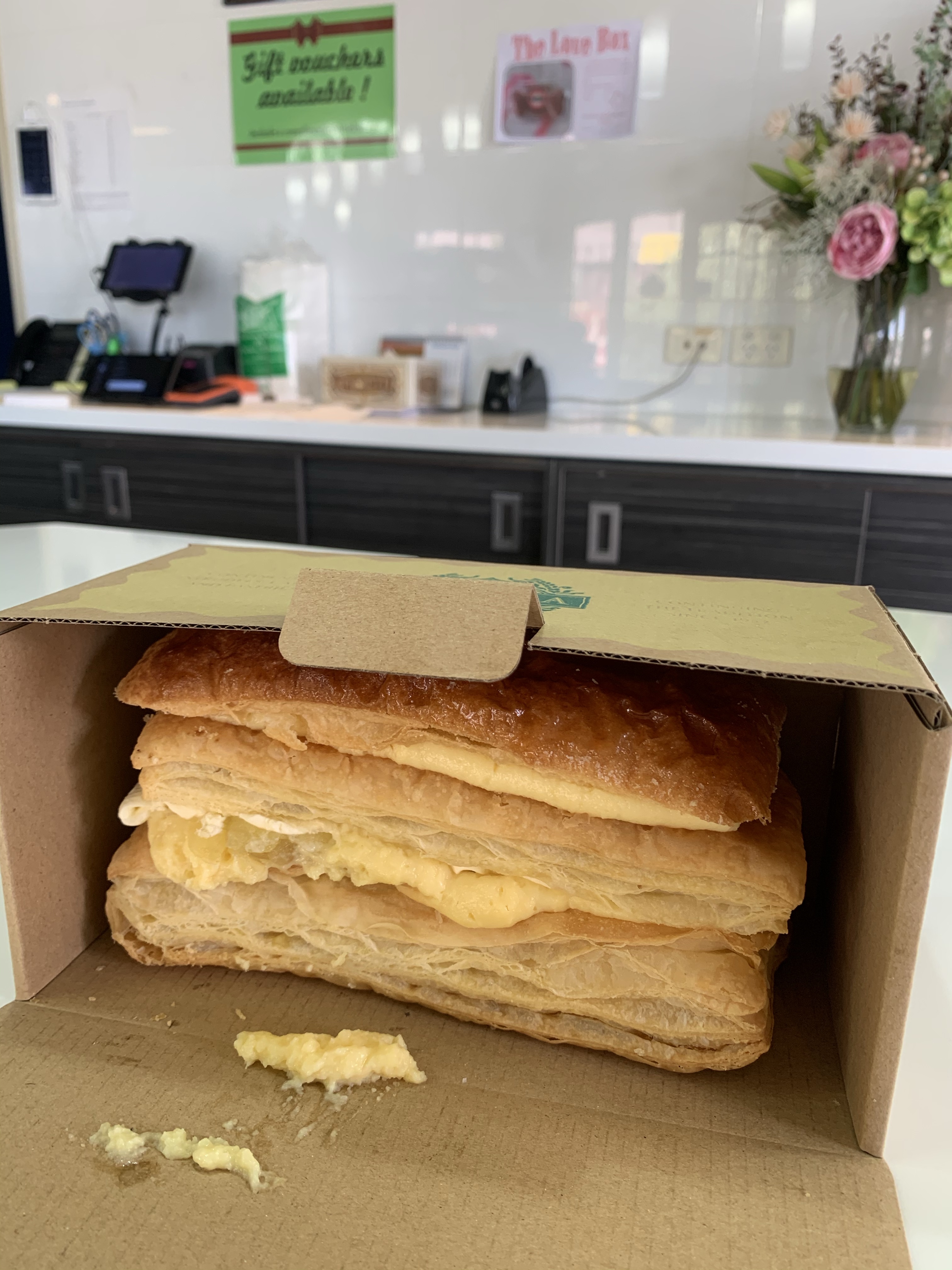 這麼大的千層派我一個人吃不完,晚上回到酒店再吃時外皮變得非常軟,而且卡士達醬有點溶掉,有點濕濕的感覺。所以,建議大家可以和朋友或家人分
