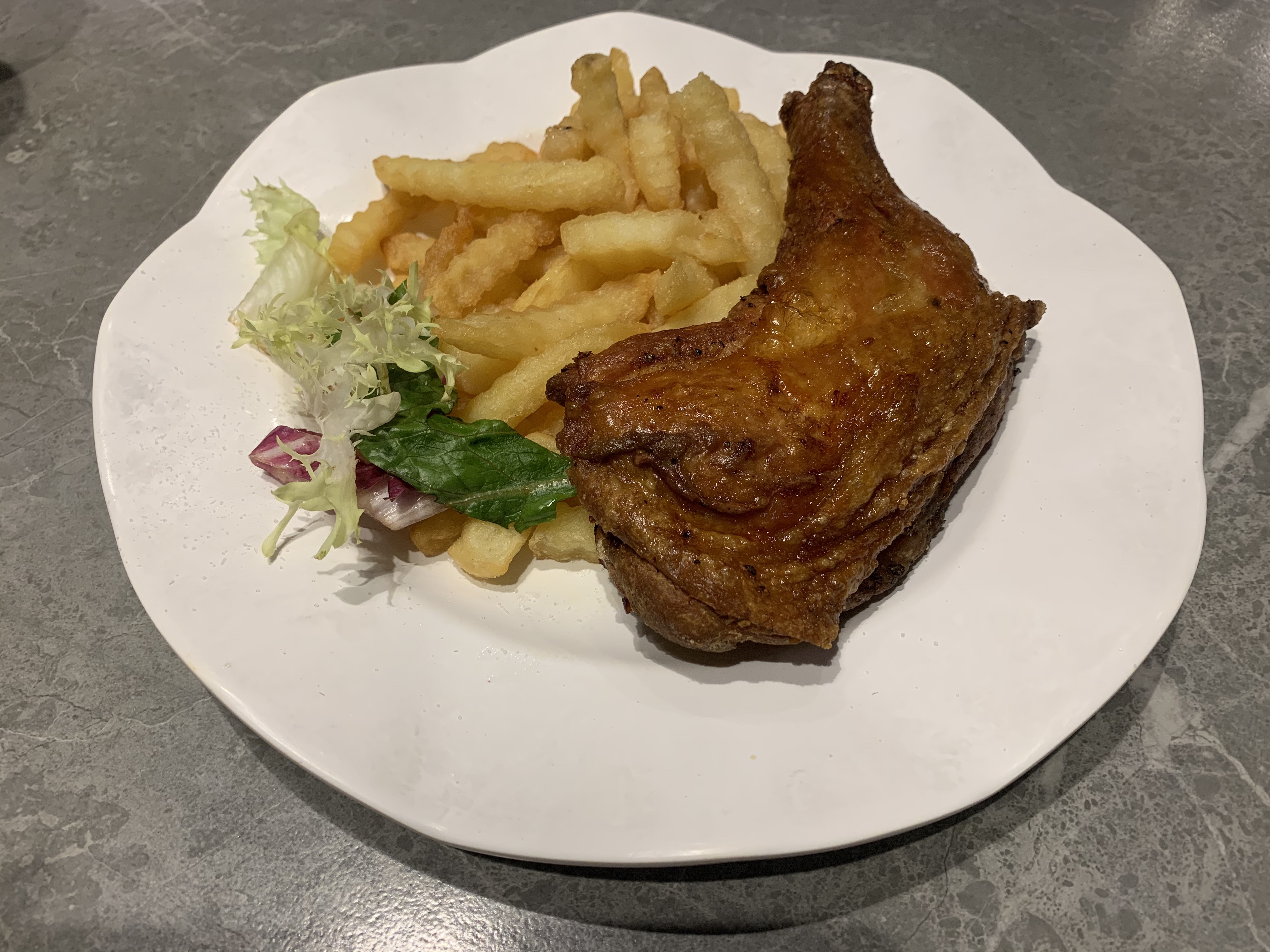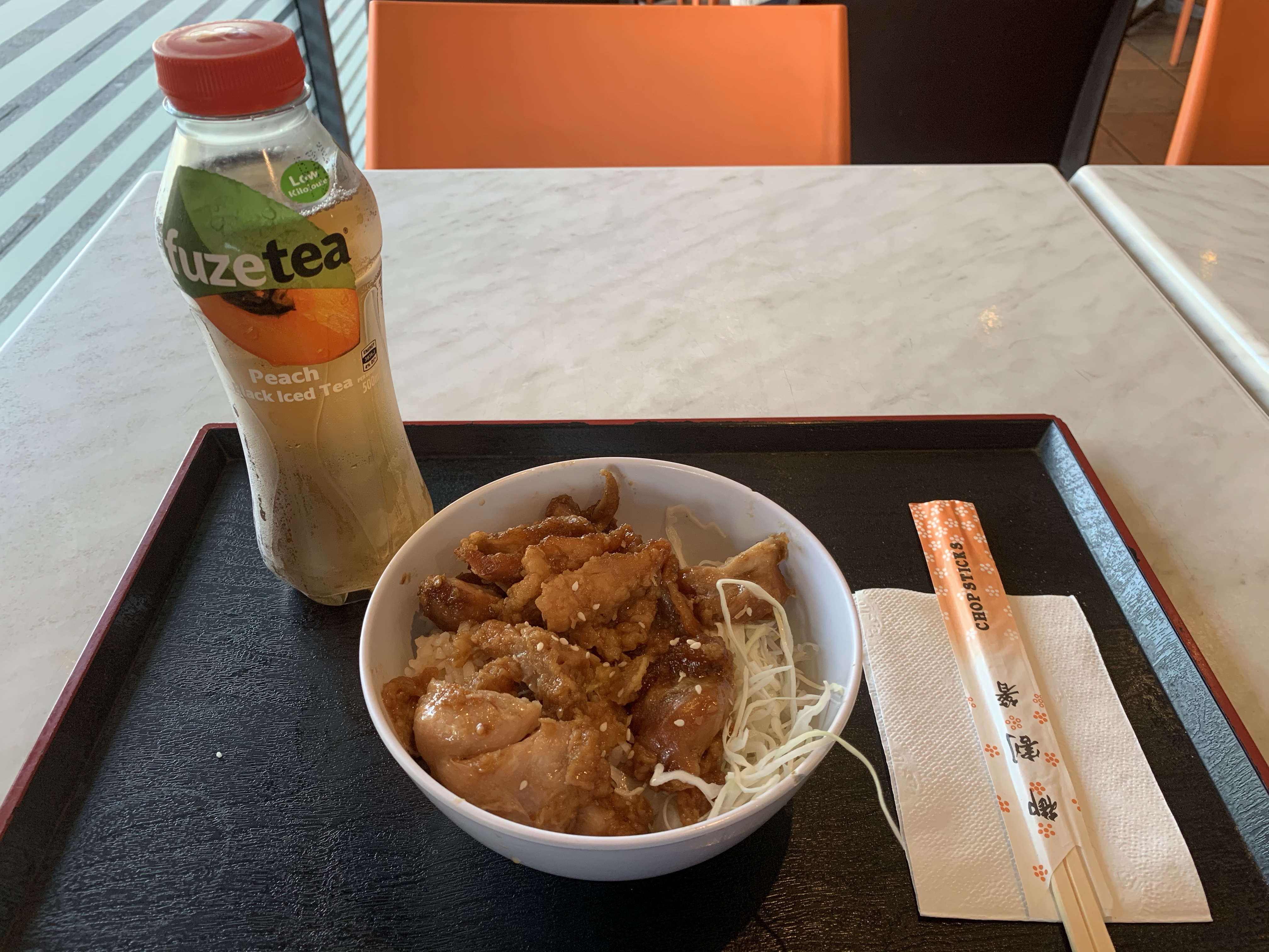 用照燒醬煮熟的照燒雞條配上沙拉和米飯。照燒脆而肉質鮮嫩但是味道不夠濃郁,沙拉亦略嫌少,只有生菜絲而已。