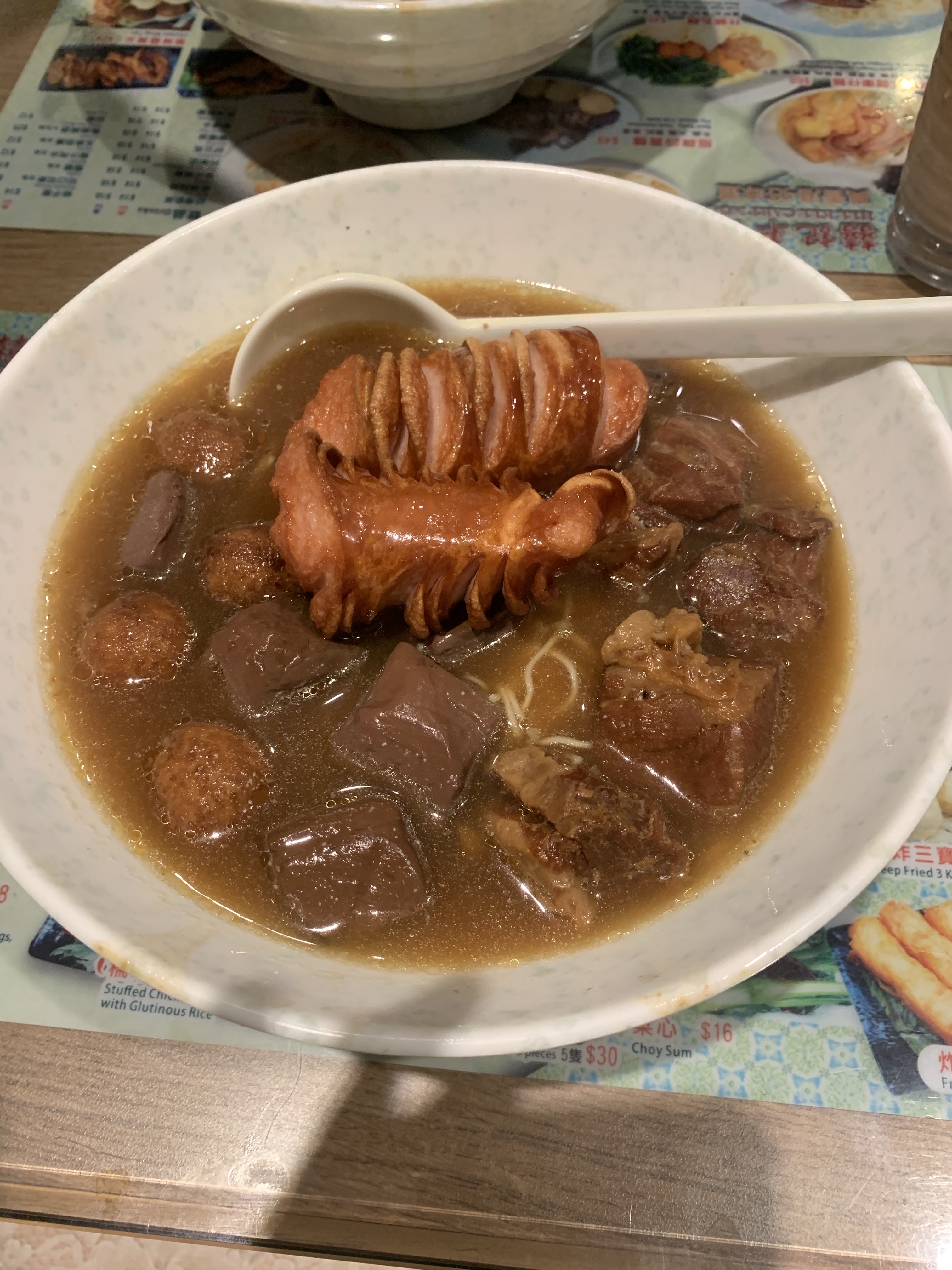 這個大雲吞,連續八年<米其林指南推薦美食>,果然利害。招牌雲吞比一般市面上的大得多,皮十薄,裏面包了兩隻蝦,入口彈牙,十分滿足感
