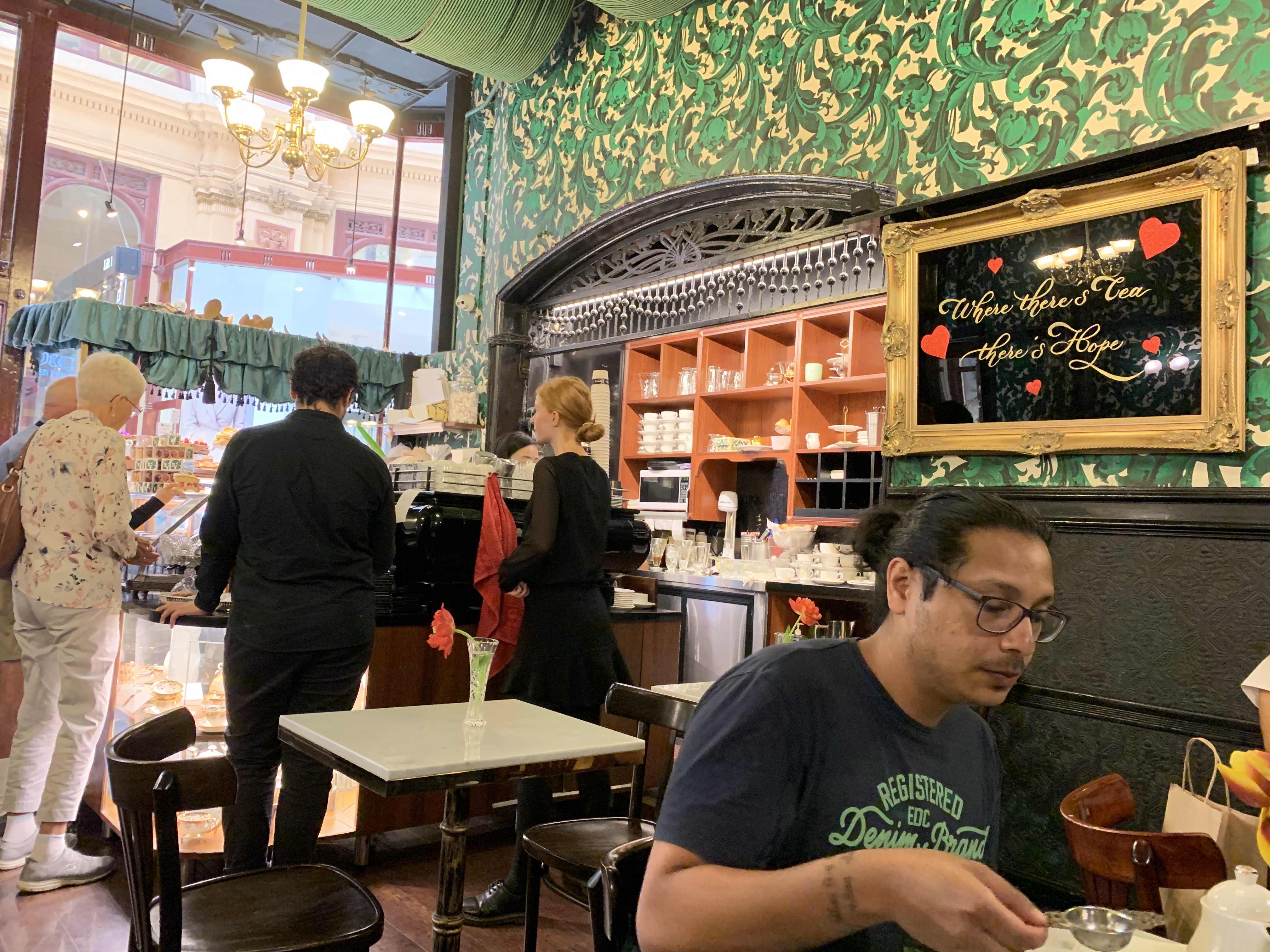 店內可以看到牆上有兩個明顯的人偶。當初在這裡有不同的中世紀穿著的文人雅士,在這兒談天喝咖啡,不知不覺就想像起當時的情形來。