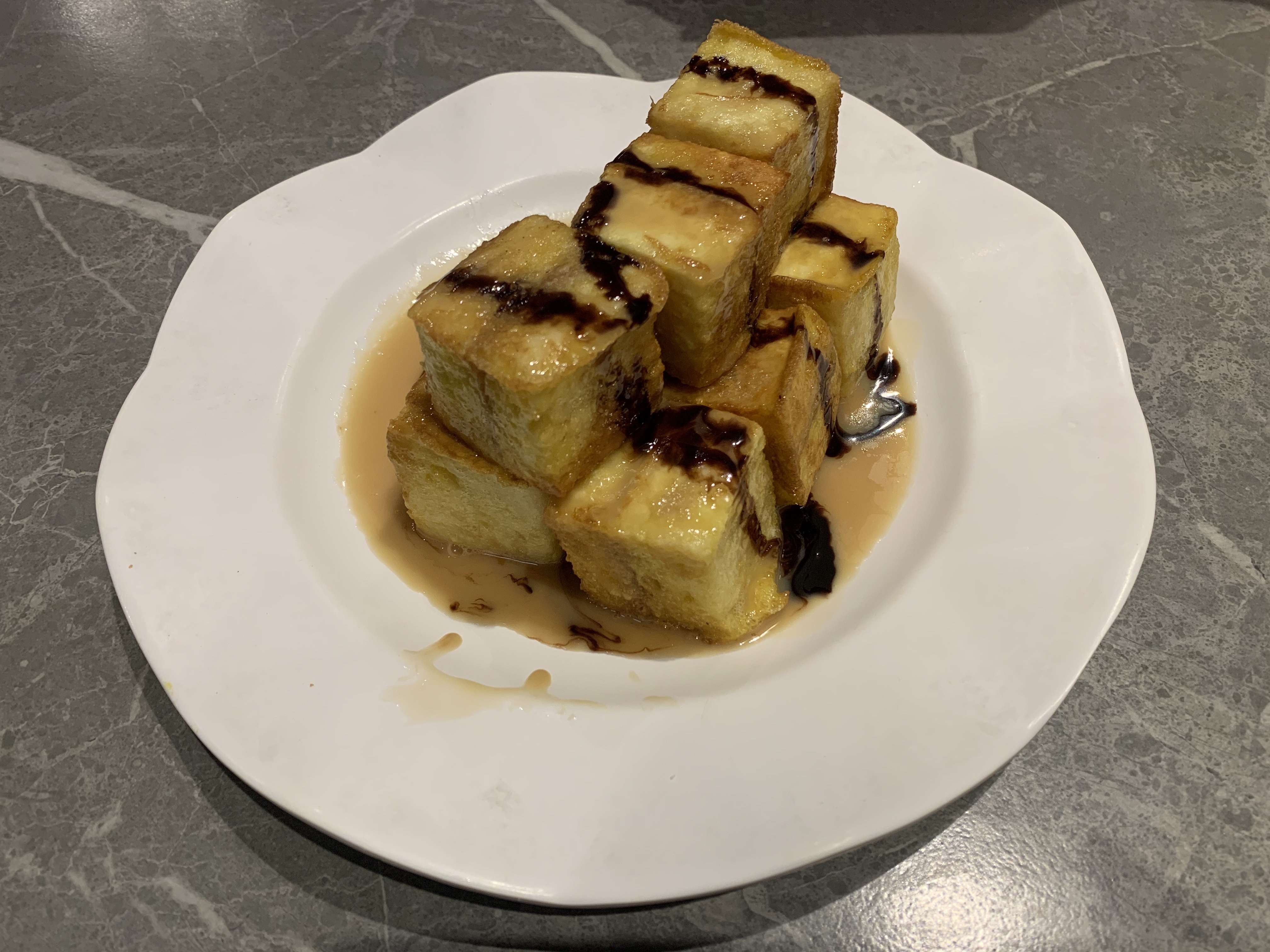 煎炸過後的芝士條吐司硬度的口感,與火腿起司搭配起來更口感,味道十分好。亦可以叉著太陽蛋,沾上蛋液一起吃,增添一蛋香