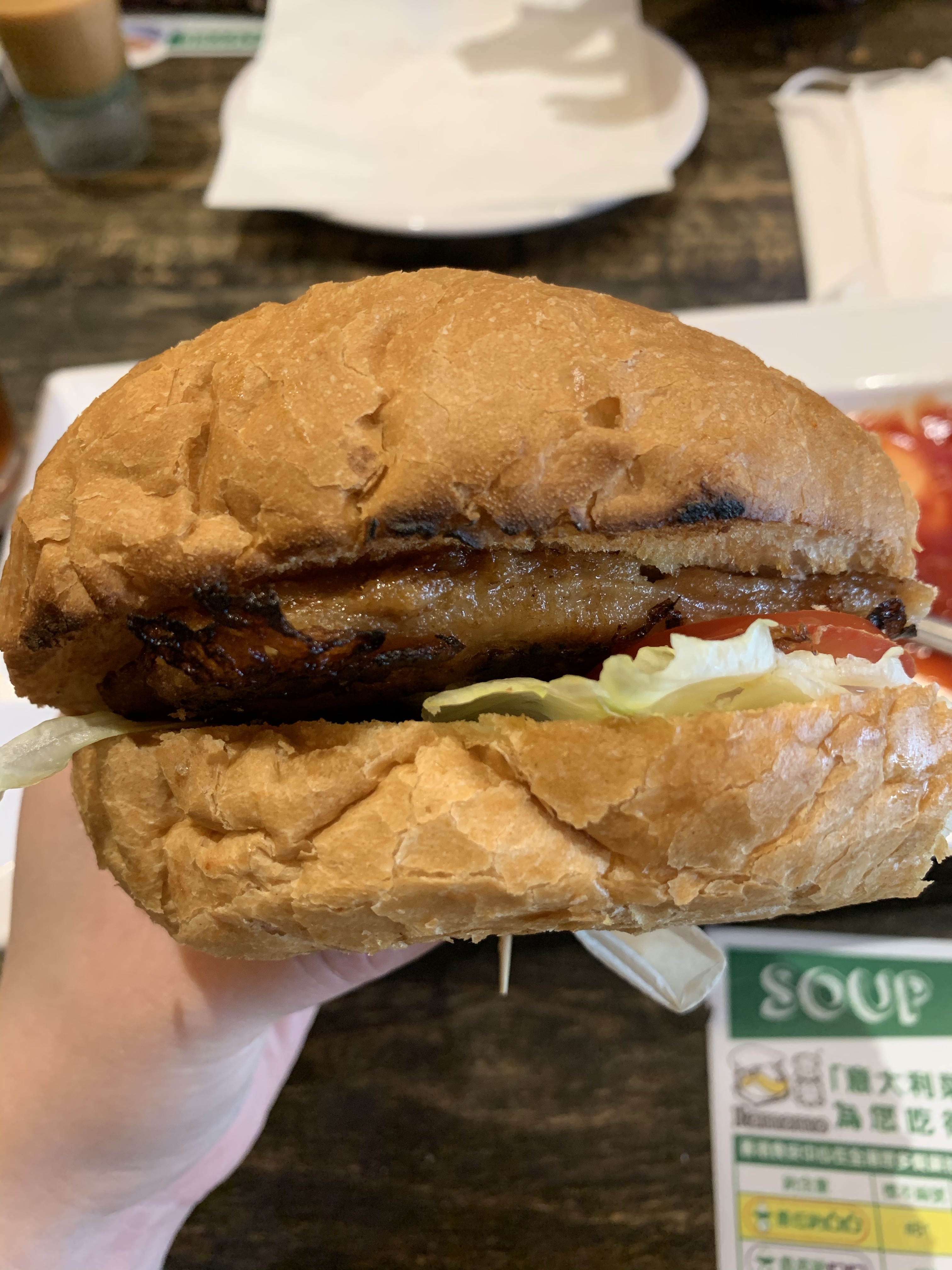 我點了這個,採用100%走地雞肉,裏面有酸瓜配上沙律醬和生菜,但是質略嫌鞋了一點,內餡沒有汁,太乾。