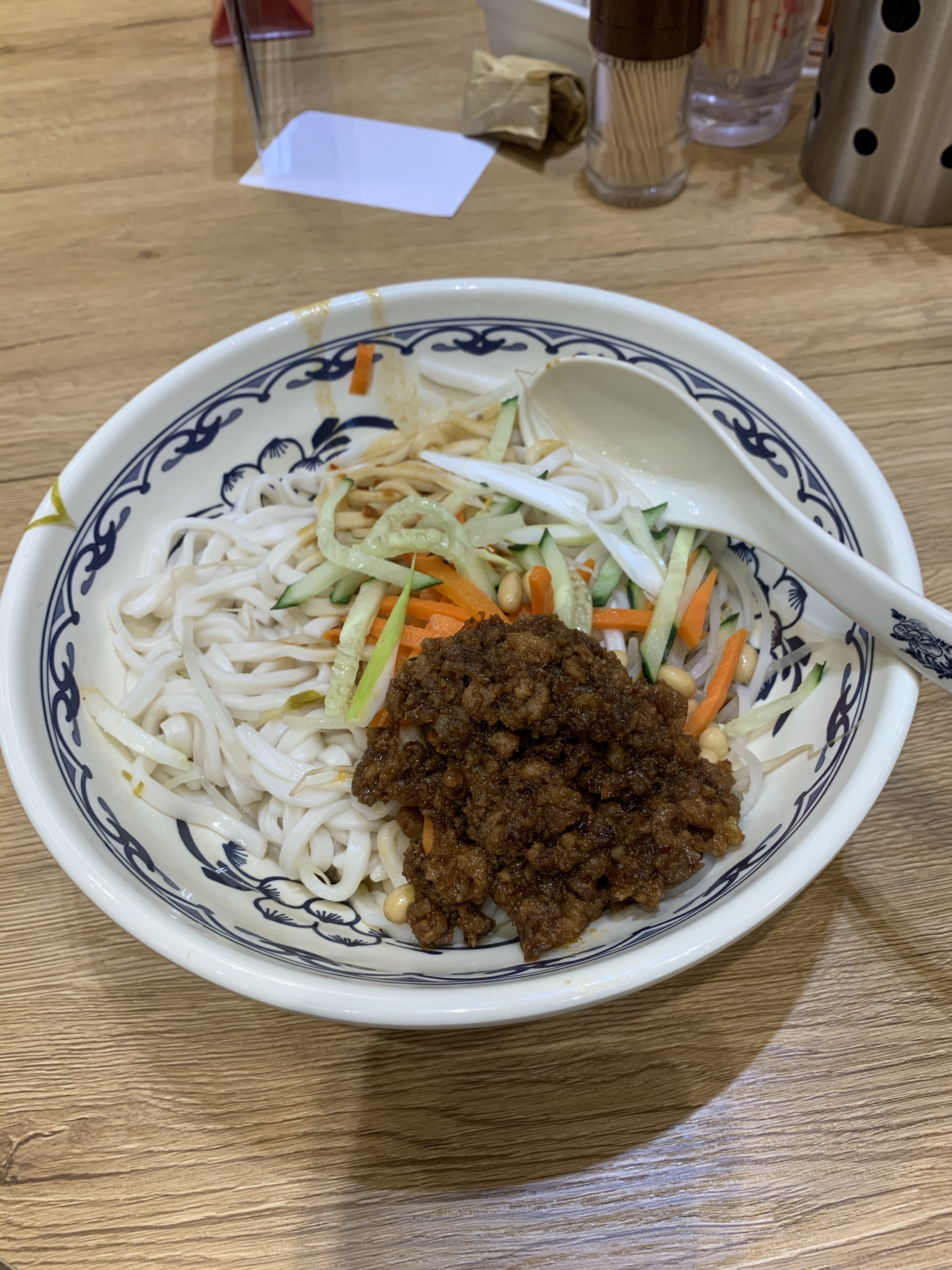 雖然門口的招牌是老北京炸醬麵,但室內嘅裝修一室淺色木系,上中國的吊燈