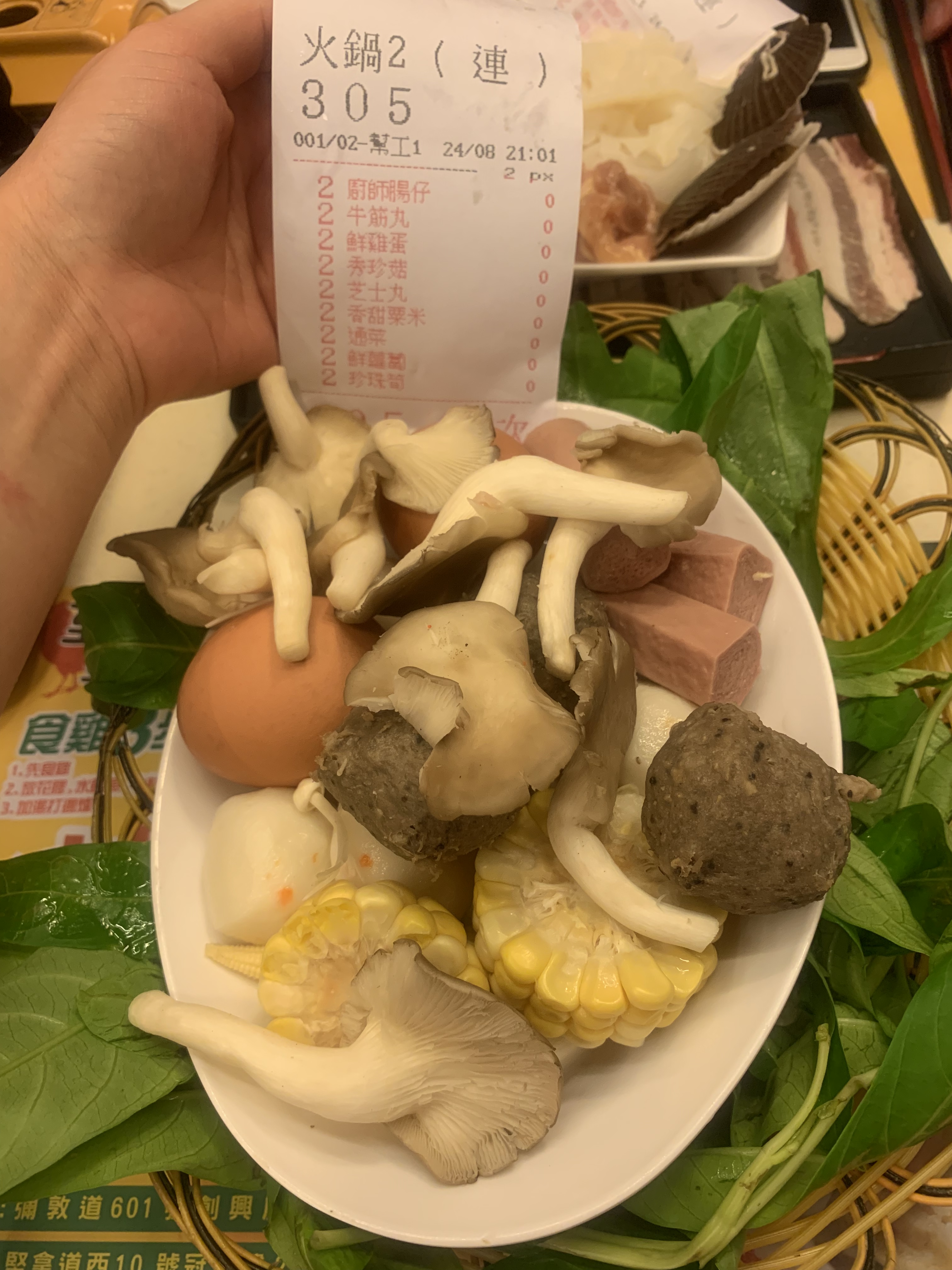 點了靑口、牛皮葉、芝士丸、肥牛和腩肉