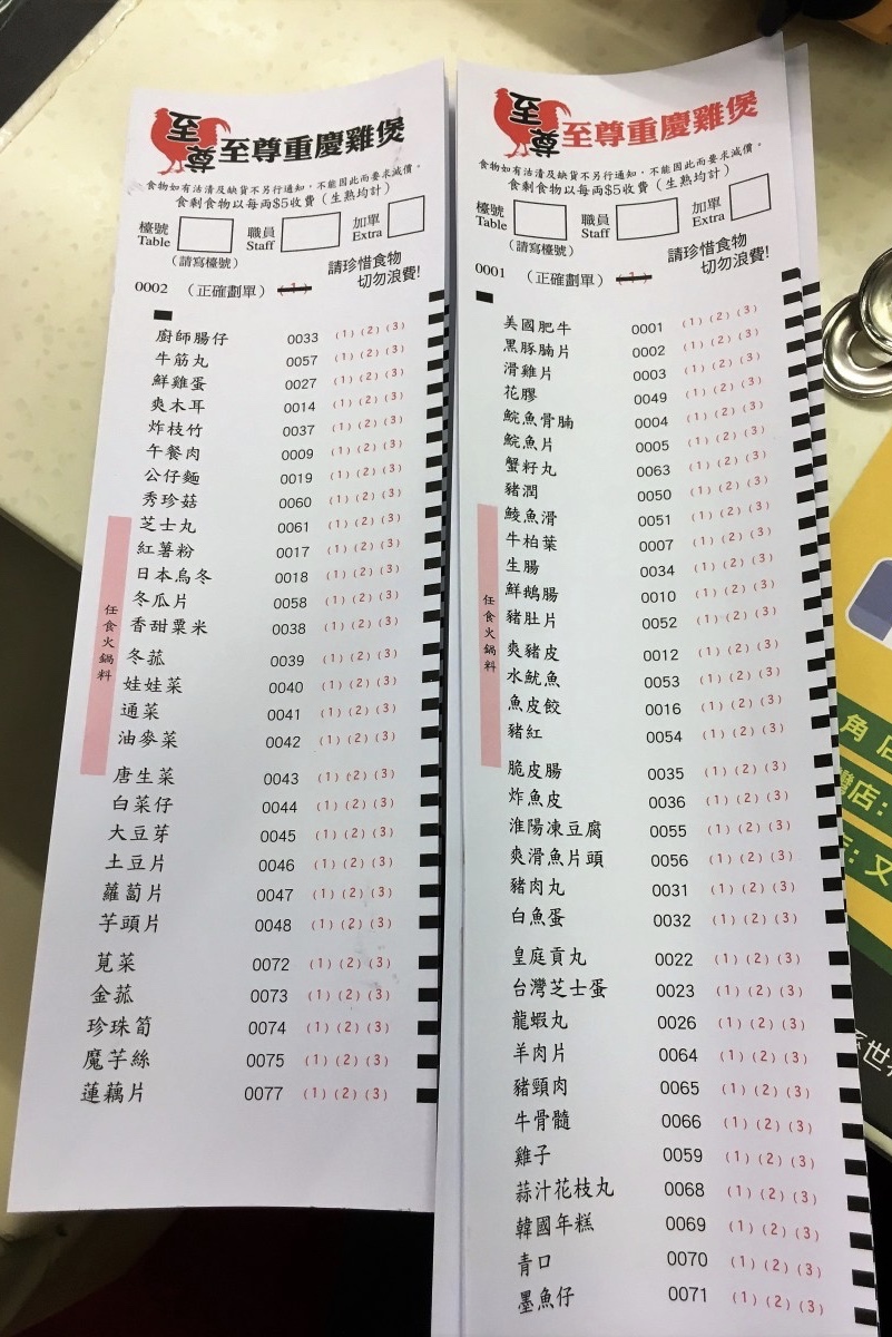 從服務員手上拿到點餐單。