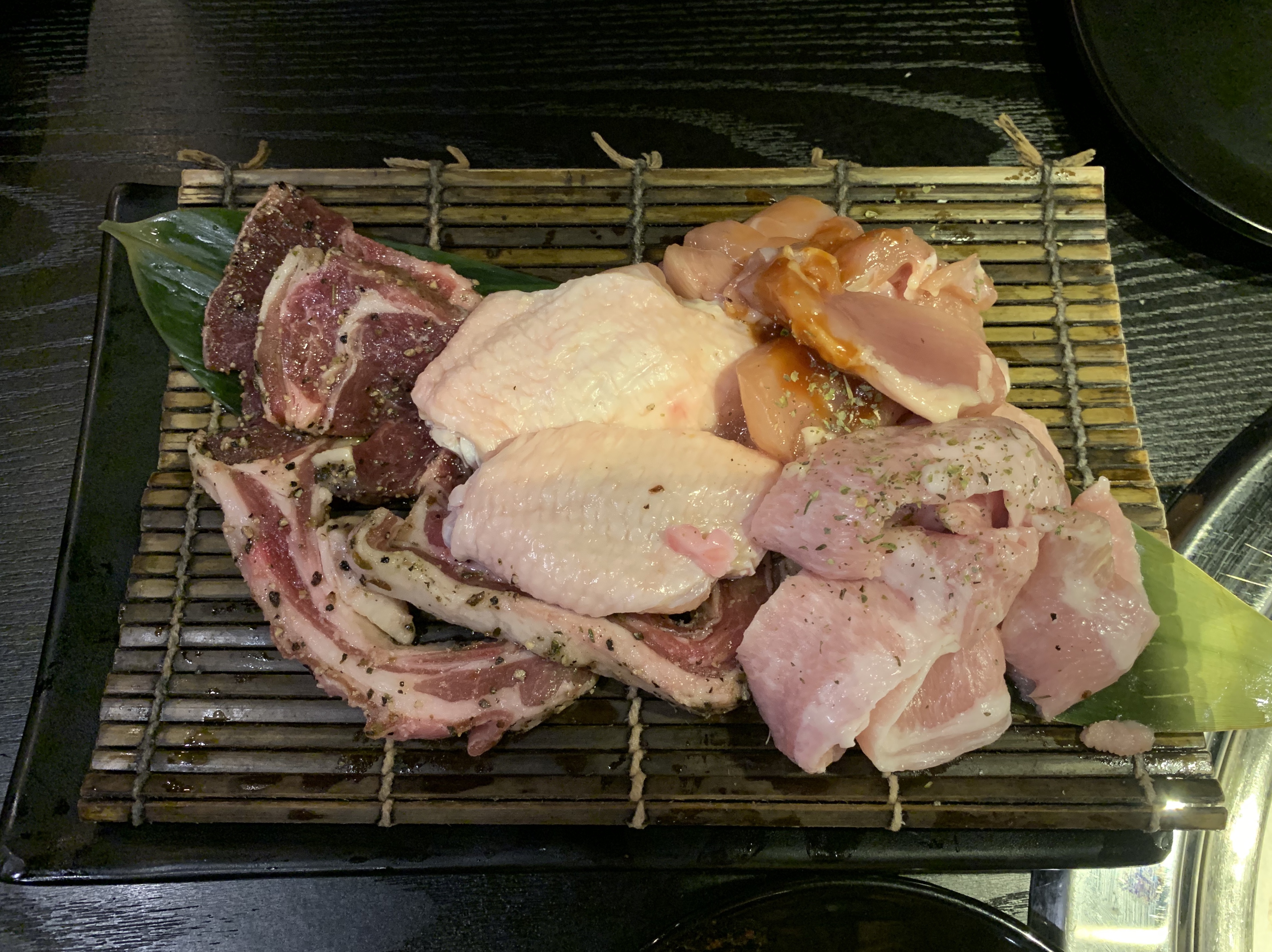牛肉、雞翼、豬肉,雞肉