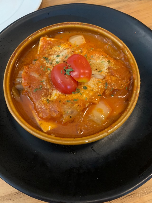 薄餅是薄皮的,非常酥脆,薄餅上有蕃茄、羅勒葉、芝士焗烤而成,非常可口。