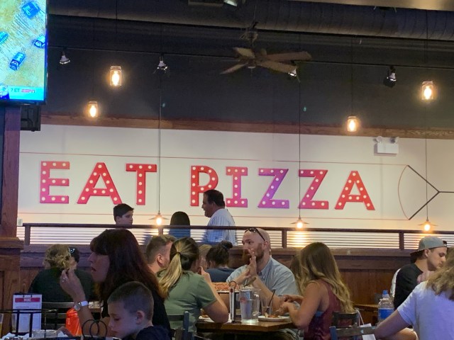 牆上寫上’eat pizza’的字句,pizza就是賣點!