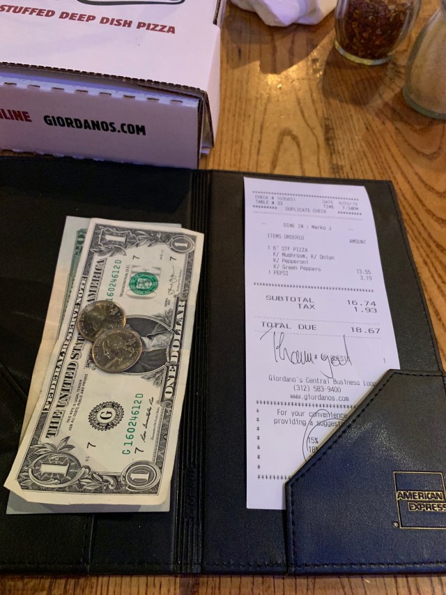 由於他的服務良好的關係,我給了點小費。